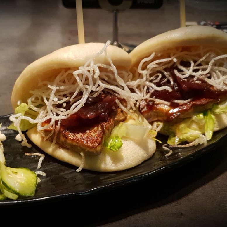 אחרי שני קוקטליים מעולים ומרעננים (ווסקי דרגון שעשוי על בסיס וויסקי, מנגו, אננס ויוזו - 49 ש"ח וסילבר ג'ינג'ר שעשוי על בסיס טקילה, סירופ אגבה וג'ינג'ר - 49 ש"ח) ניגשנו למנות הפתיחה שכללו: טטאקי טונה ותפוח עץ - נתחי פילה טונה טרי צרובים ומגולגלים במילוי תפוחי עץ ומלפפון על מצא מיקרו בזיליקום ורוטב איולי יפני (59 ש"ח), טבעות קלאמרי פריכות (54 ש"ח) ובאן כבד אווז - 2 יח' לחמניית באן מאודה במקום, במילוי נתחי כבד אווז בטפניאקי ואטריות שעועית פוג'ייאן קריספיות (84 ש"ח). מנות הפתיחה היו טעימות להפליא, טריות ועשירות בצבעים וטעמים. (במיוחד הבאן כבד אווז)