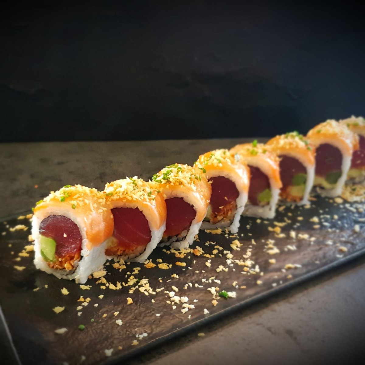 אולי פה זה המקום לציין שמסעדת FRAME היא מחלוצות הסושי בארץ, מה שזיכה אותה פעמיים בתחרות הסושי הגדולה בישראל, שהונחתה על ידי יבואן מותג הסויה הגדול בעולם "קיקומן." אם כך לא יכולנו שלא לטעום מהסושי המפורסם של המסעדה.