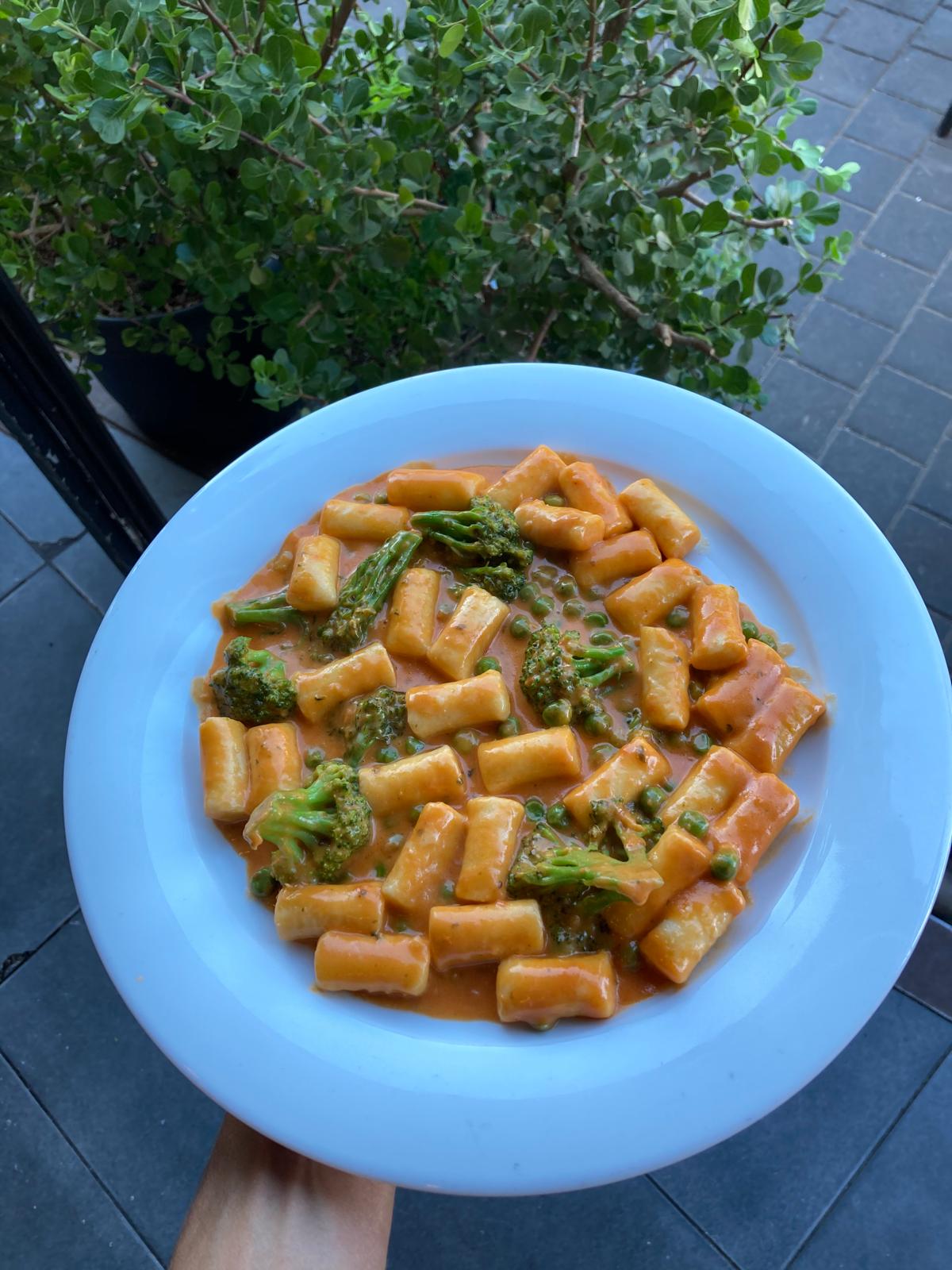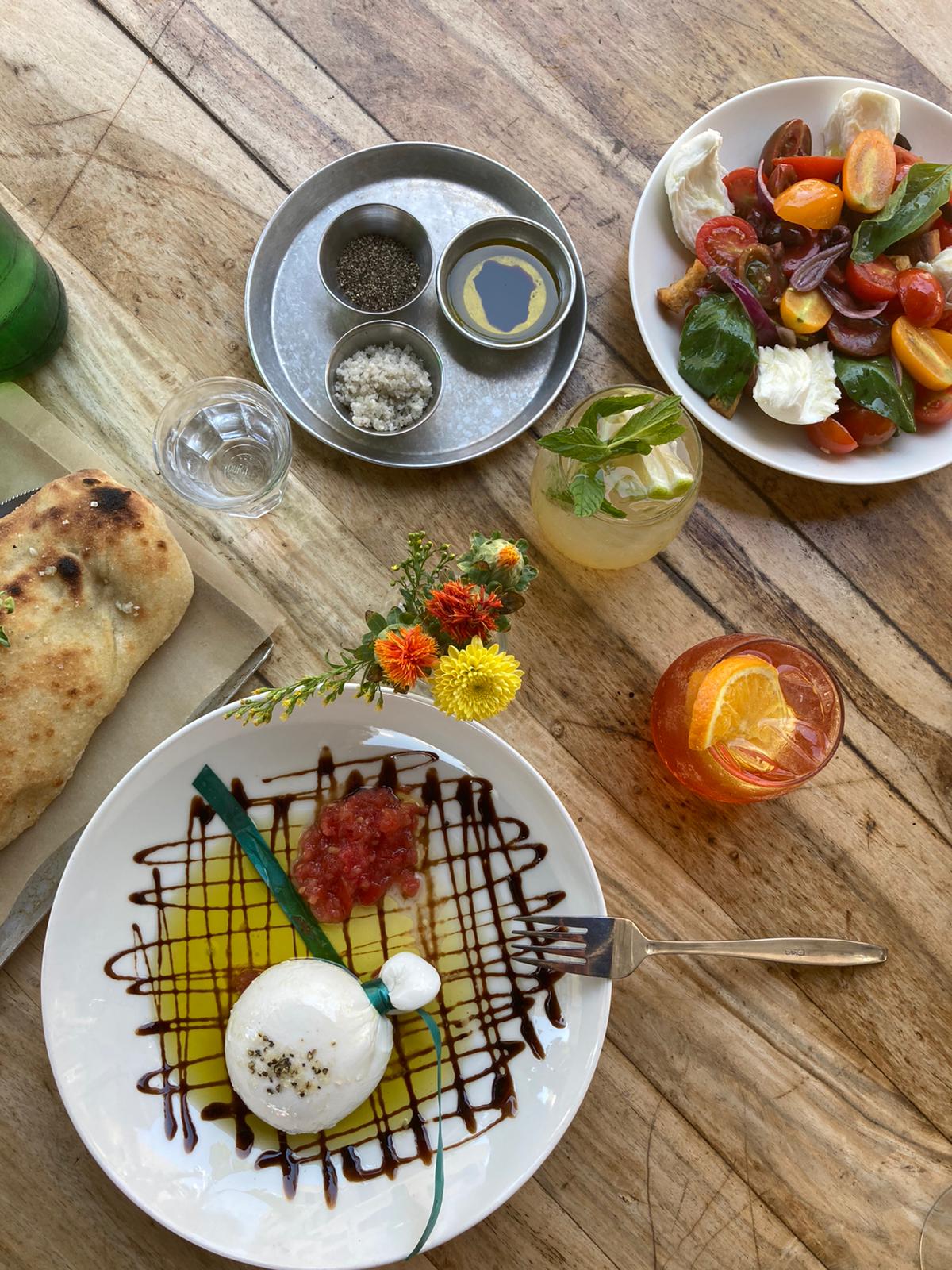 המלצרית חייכה אלינו בנימוס כשהזמנו בשקיקה את המנות, והיין הלבן המבעבע כבר פתח לנו את התיאבון. כשהגיע הריזוטו והסלט הטרי שתינו צקצקנו בהנאה בלשון, וקינחנו בפסטה צבעונית על בסיס אליו-אוליו, כי ארוחה ללא פסטה זו לא באמת ארוחה איטלקית. שילוב הטעמים בכל המנות היה נהדר והרמוני, והופתענו לטובה גם מן המבחר הטבעוני שקיים במקום. את הריזוטו עיטרו בחן רב בצל ירוק וקרם פרש, והסלט הפנצנלי התקשט בעגבניות שרי שונות, ועל אף שנזהרנו מאוד שלא להתלכלך, שמן הזית השאיר אותותיו בכל מקום.
