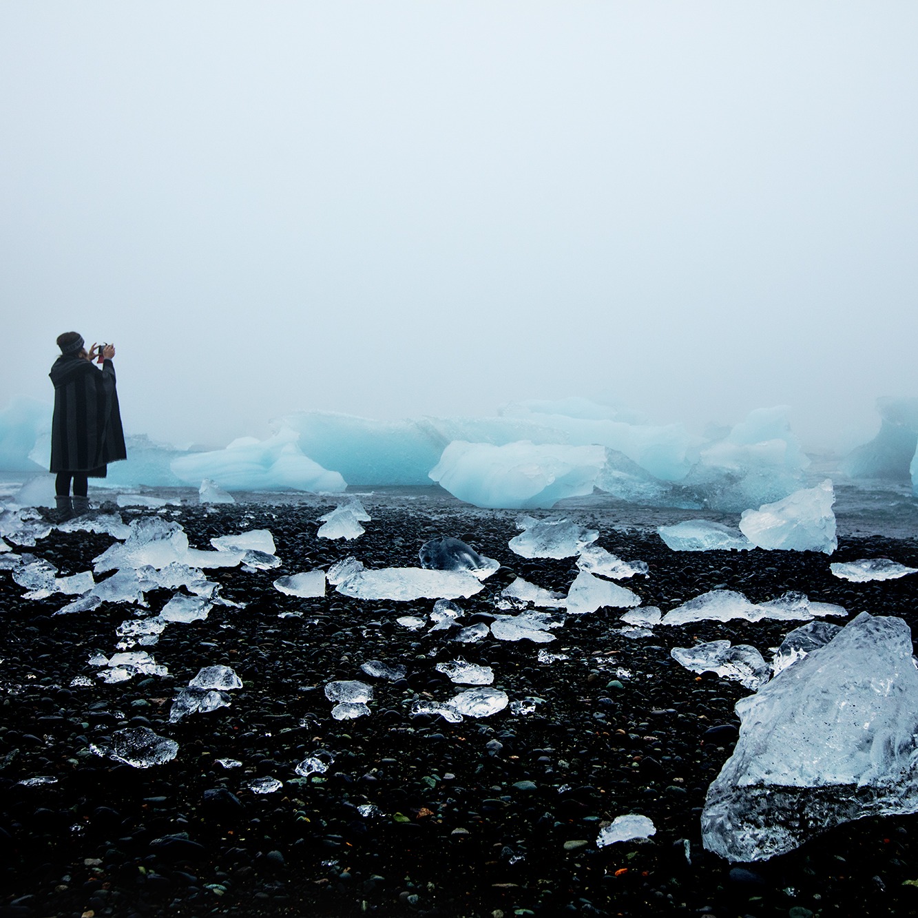 נופים מדהימים של קרחונים כחולים ושקופים באיסלנד