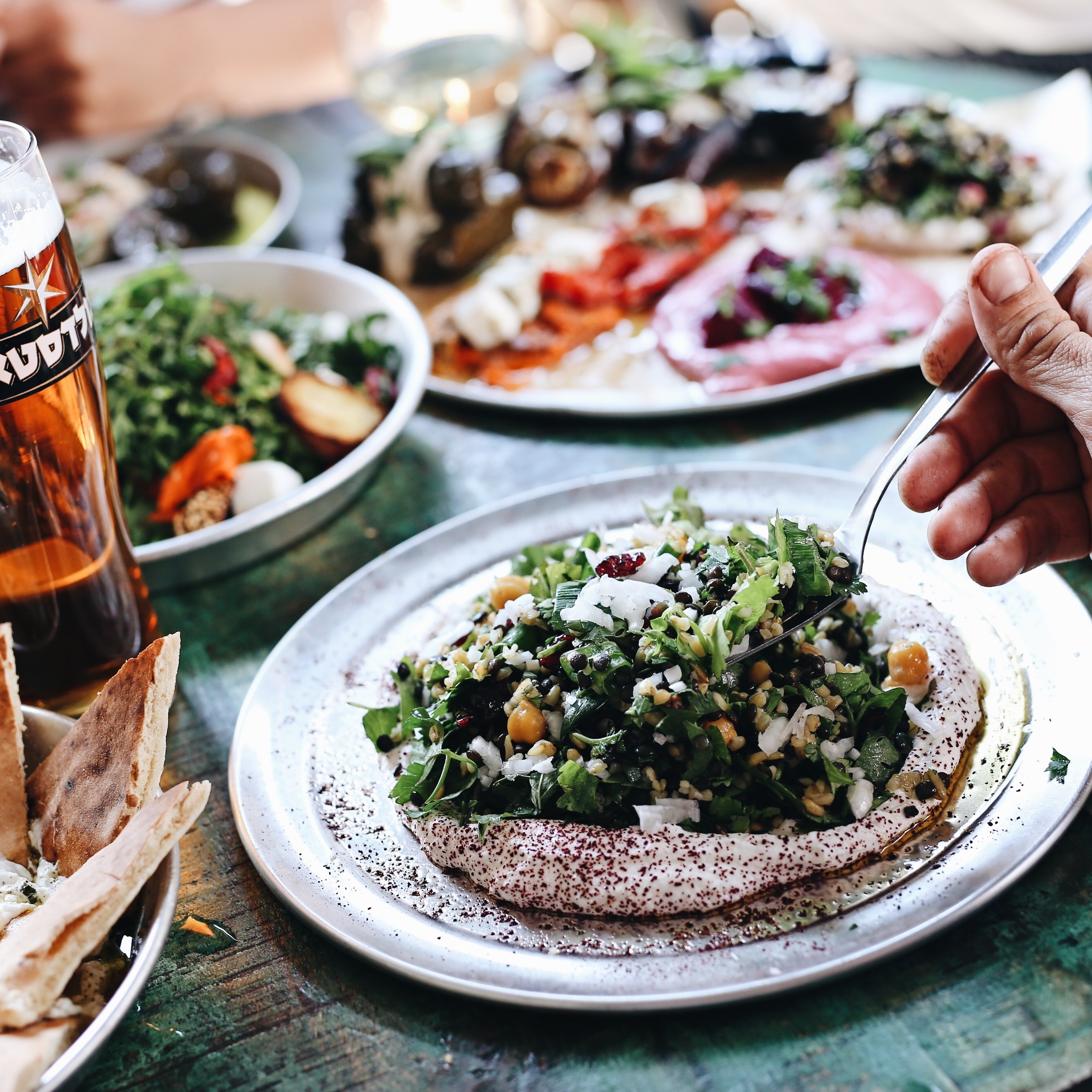 התחלנו את הארוחה עם קוקטייל הבית "מייד אין ג'אפה" בניחוח ארומטי מתובל ועם רצועות דקיקות של מלפפונים שהעניקו פריכות מעניינת לדרינק. חלקנו מנת פתיחה שנקראת "שולחן טעימות" וכללה מגוון מאזטים כולל פרצל הבית, טחינה סלק, עלי גפן חמים ומצוינים, חציל בנענע, סלט עדשים נפלא ועוד. המנה גדולה ומפנקת, ומתאימה לחלוקה לזוג.