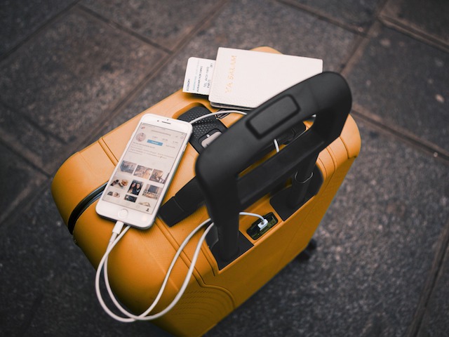 טרולי של ROLLINK עם מטען לטלפון נייד. צילום: מירב בן לולו