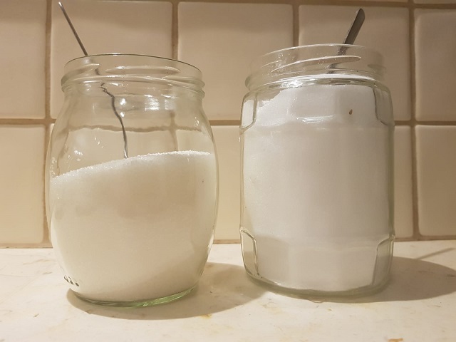 מערבבים 5 כפיות סוכר עם 1 כפית מלח.
